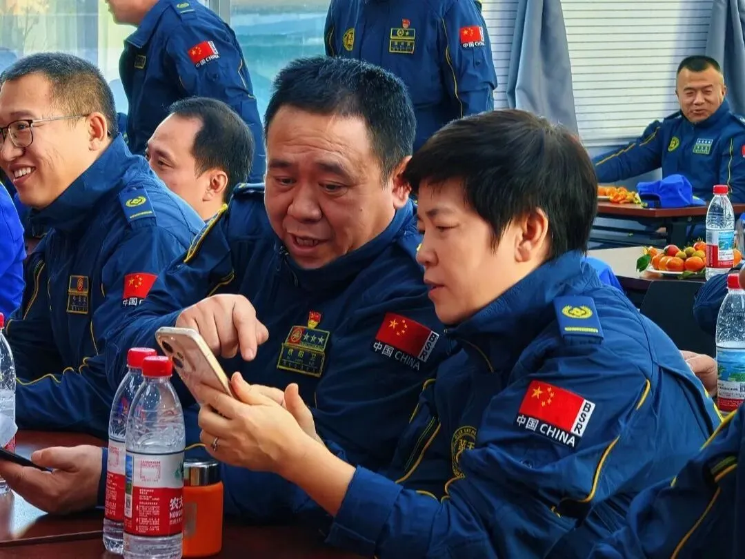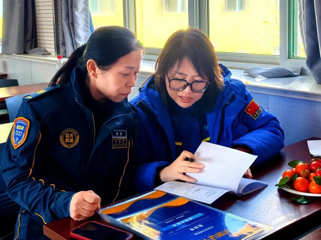 休息间隙,大家围坐在一起进行交流,有的凑在手机前分享现场照片,还有队员在台前默契核对流程,连现场的小朋友也被温暖的氛围吸引,和队员们开心互动。这些专注、鲜活又充满温情的瞬间,让在场所有人直观感受到蓝天救援过硬的专业底气与温暖的团队氛围。