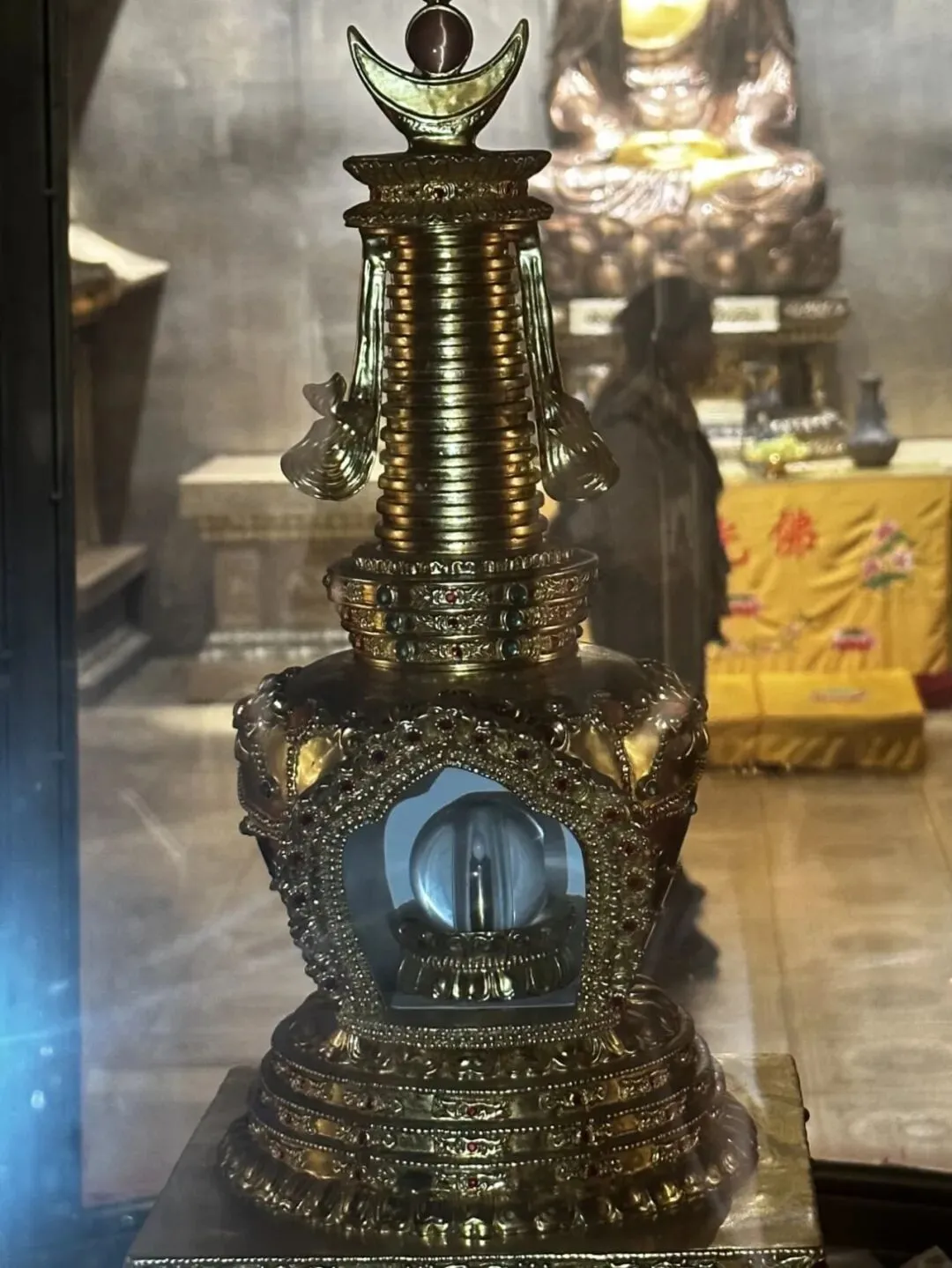 “千佛地宫”的四壁上供奉着4尊主佛(北为地藏王菩萨,南为观世音菩萨,东为文殊菩萨,西为普贤菩萨)和448尊小供养佛像,再加上墙壁和塔柱上的浮雕佛像共有1000余尊。地宫中的浮雕描绘了释迦牟尼佛一生的经历,再现了佛主“树下诞生”、“天人献衣”、“得遇沙门”等故事。地宫中央是元末明初慧明法师的一颗肌肤舍利,算是整座宝塔中的“镇塔之宝”啦,看起来像是一个大米粒,个人对这个地宫整体都兴趣不大,倒是下午水光照在宝塔石阶上有一种“动影映壁”的感觉。