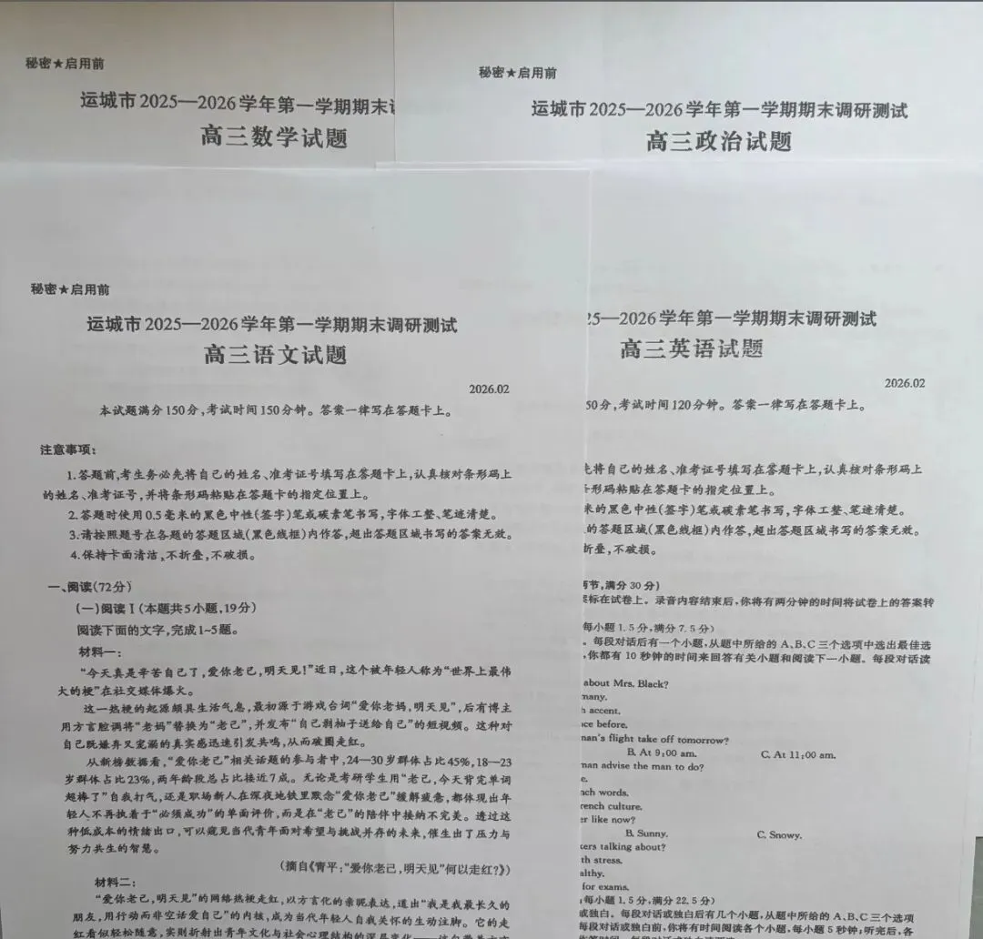 联考名称:山西思而行联考暨大同/阳泉/运城市2025-2026学年第一学期高三期末调研测试