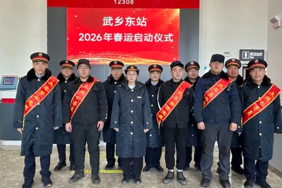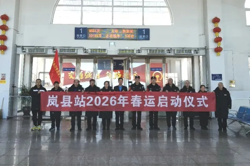 文水站紧扣“平安春运•文水护航”核心主题举办春运启动仪式,通告2026春运文水站列车开行安排,详解手机充电、重点旅客帮扶等便民服务举措,随后呈现歌舞等精彩才艺表演,穿插铁路安检、购票等知识有奖问答。