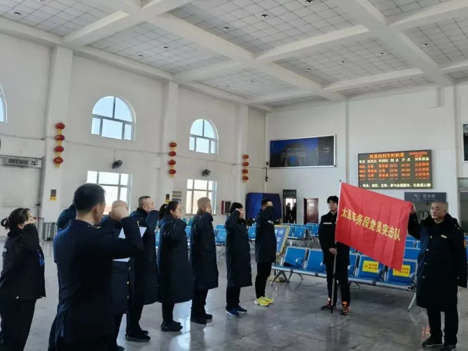 岚县站全体客运人员庄严宣誓,铿锵誓言彰显春运攻坚的坚定决心。全力护航铁路春运出行路,倾心铺就乘客旅途幸福轨。