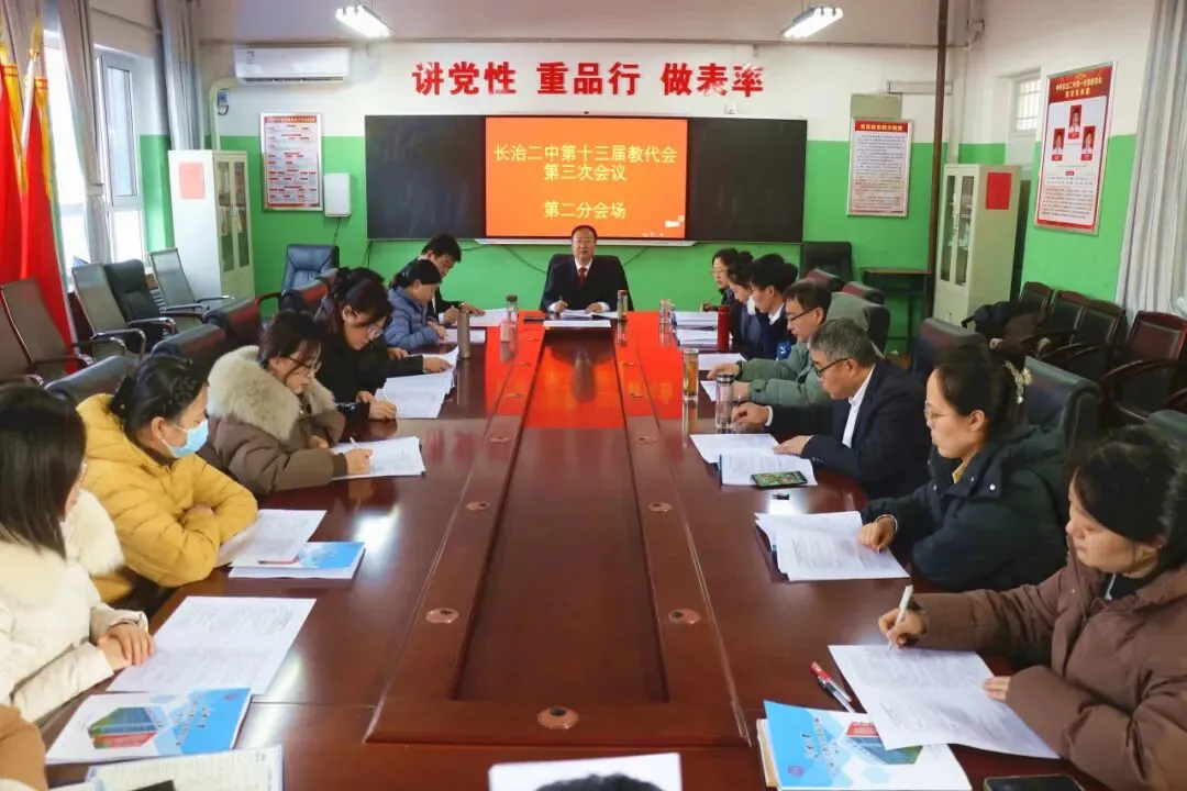 1月31日,长治二中第十三届教代会第三次会议隆重召开,全体教工代表73人齐聚一堂,以高度的责任感和饱满的热情为学校高质量发展建言献策,共商未来蓝图。