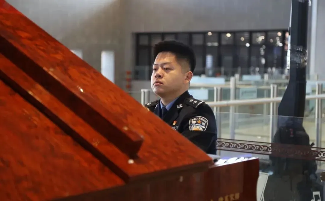 青年民警文艺骨干弹奏钢琴独奏