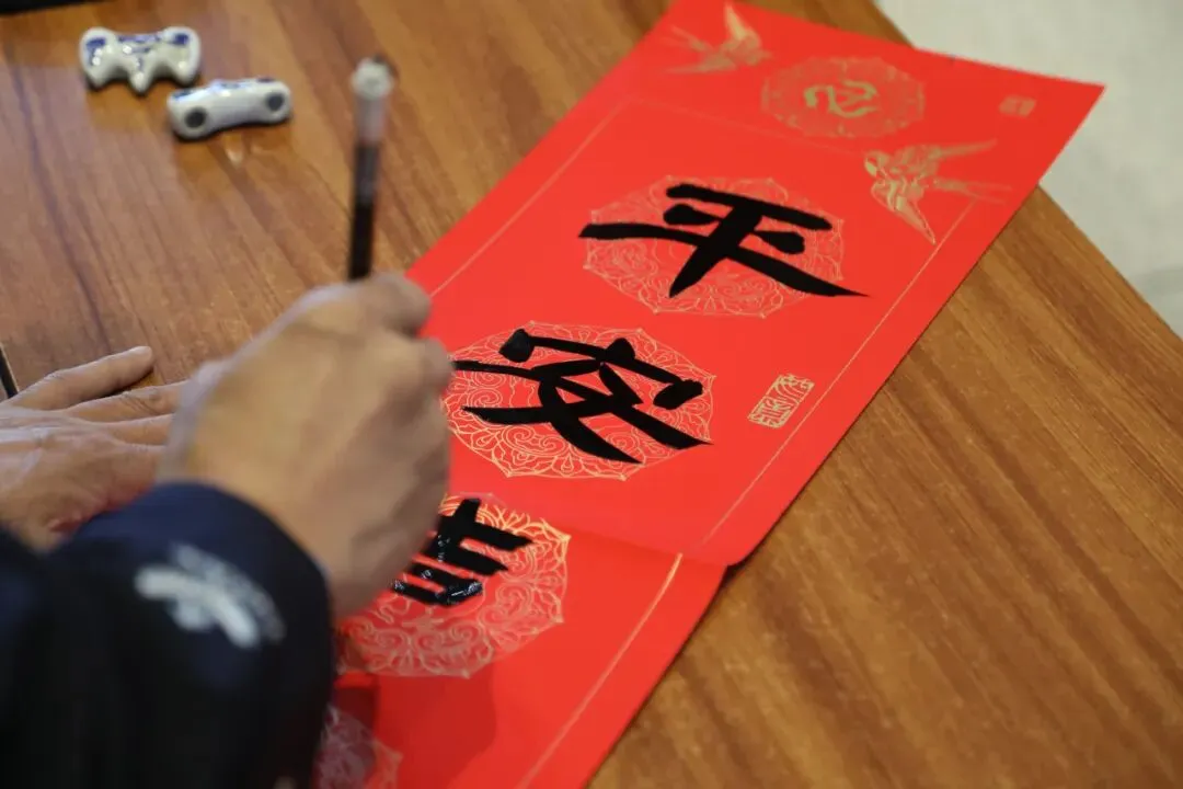书法家现场挥毫书写福字、春联