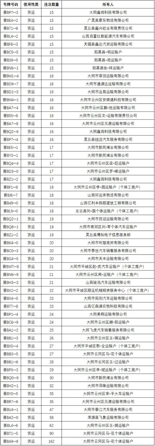为加大道路交通安全管理力度,进一步提高辖区驾驶人道路交通安全意识、守法意识,对辖区内存在违法未处理数量达到15次(含)的重点车辆进行梳理、公告。请名单内违法车辆所属企业尽快处理违法,从源头上预防和减少道路交通事故。