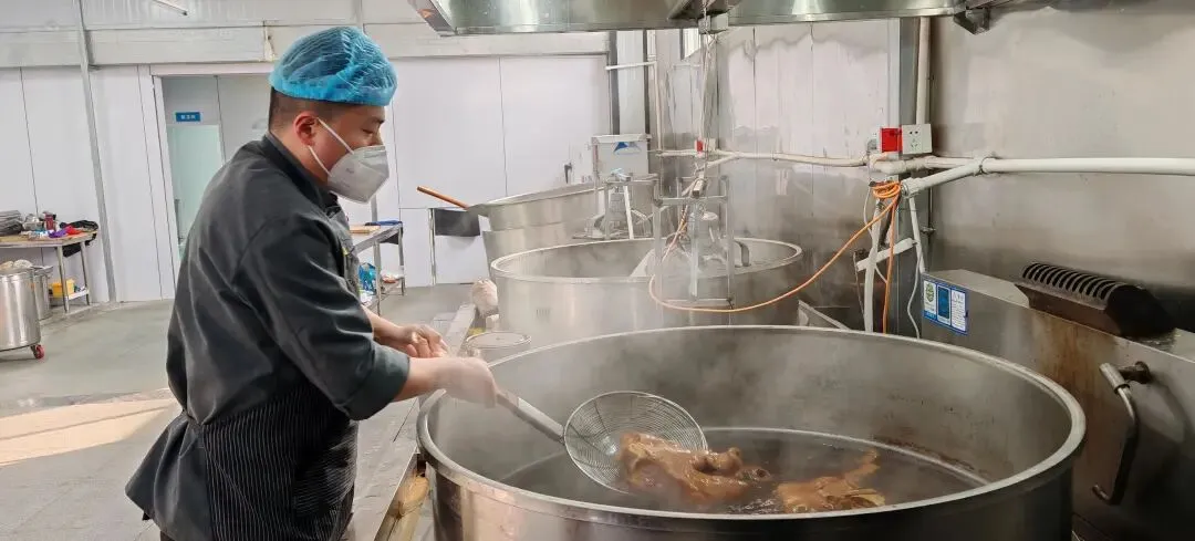 守正创新,是非遗传承的生命力。晋源八碟八碗的传承,既守得住古法匠心,也跟得上时代步伐。新建的标准化操作间里,光线明亮、秩序井然,传统灶台与智能蒸箱相得益彰,手工操作与标准化生产互补相融,解冻、配料、加工、包装分区明晰,工作人员着装统一规范作业:腌浸卤煮的古法技艺被完整保留,真空包装、低温杀菌等现代技术又巧妙融入,彻底解决了传统宴席“携带不便、保质期短”的痛点,齐全的资质、卫生的环境,也让每一份美味都吃得放心。