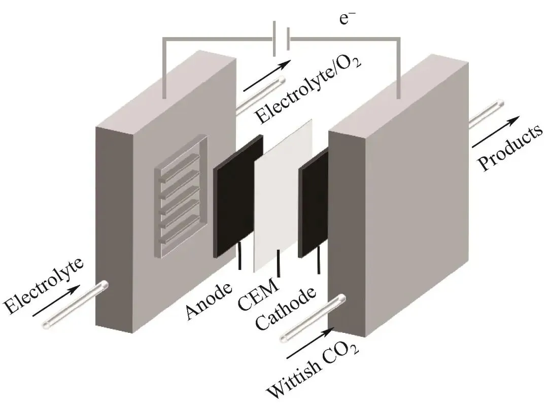 随着全球碳排放问题日益严峻,二氧化碳的捕集和利用已成为当前的研究热点[1-2]。在众多二氧化碳还原反应中(电催化[3]、光催化[4]、热催化[5]、生物催化[6]),电催化二氧化碳还原反应(CO2RR)因其能够将CO2转化为高附加值燃料和化学品(如CO[7]、甲酸[8]、乙烯[9]、乙醇[10]等)而备受关注,其中CO是电催化CO2还原反应中最具经济可行性的产物之一[11]。然而,在传统碱性或中性电解液体系中,CO2气体容易与电解液中的OH-反应生成碳酸盐,生成的碳酸盐会沉积在电极表面,从而增加电极电阻,阻塞气体输送通道,并覆盖催化剂表面的活性位点;同时,碳酸根离子及碳酸氢根离子(