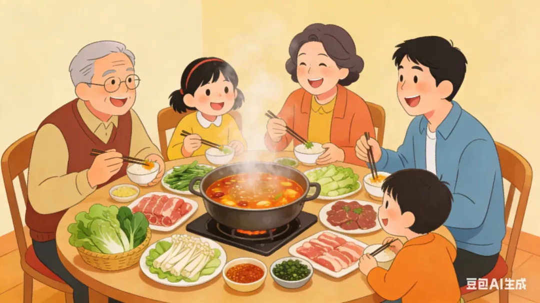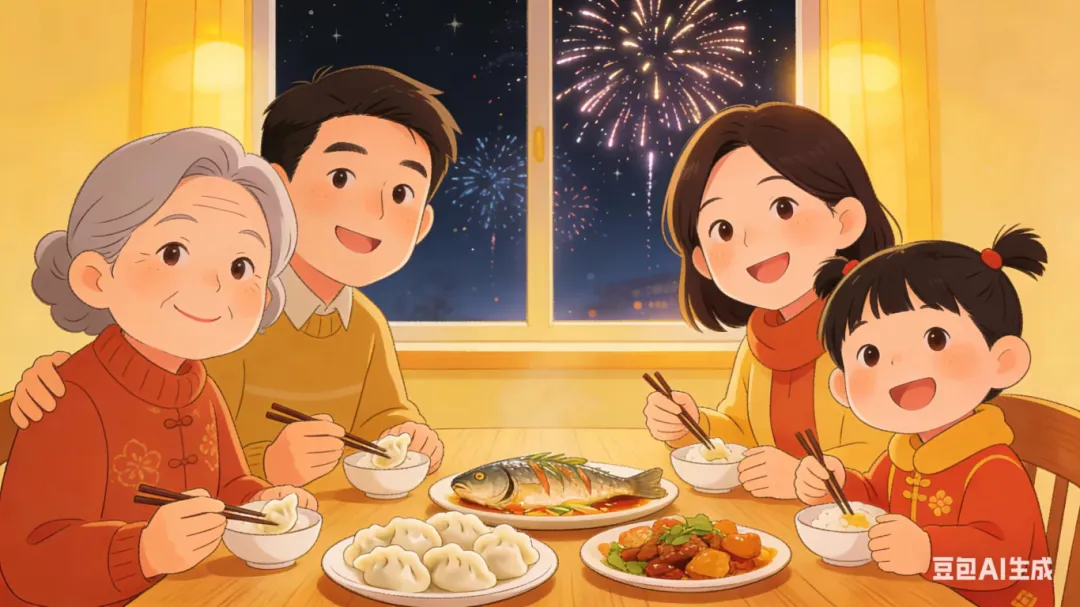 饭桌上,一家人你一言我一语,满是温暖的祝福。爷爷奶奶希望我快乐成长、天天开心;爸爸妈妈叮嘱我好好学习、天天向上;我也在心里悄悄许愿,希望自己新的一年学业有成,一家人都能开开心心。就这样,我们在欢声笑语中吃完了这顿充满浓浓亲情的团圆饭。