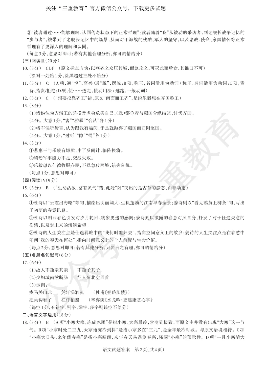 大同/阳泉/运城市高三1月期末调研考试试题答案
