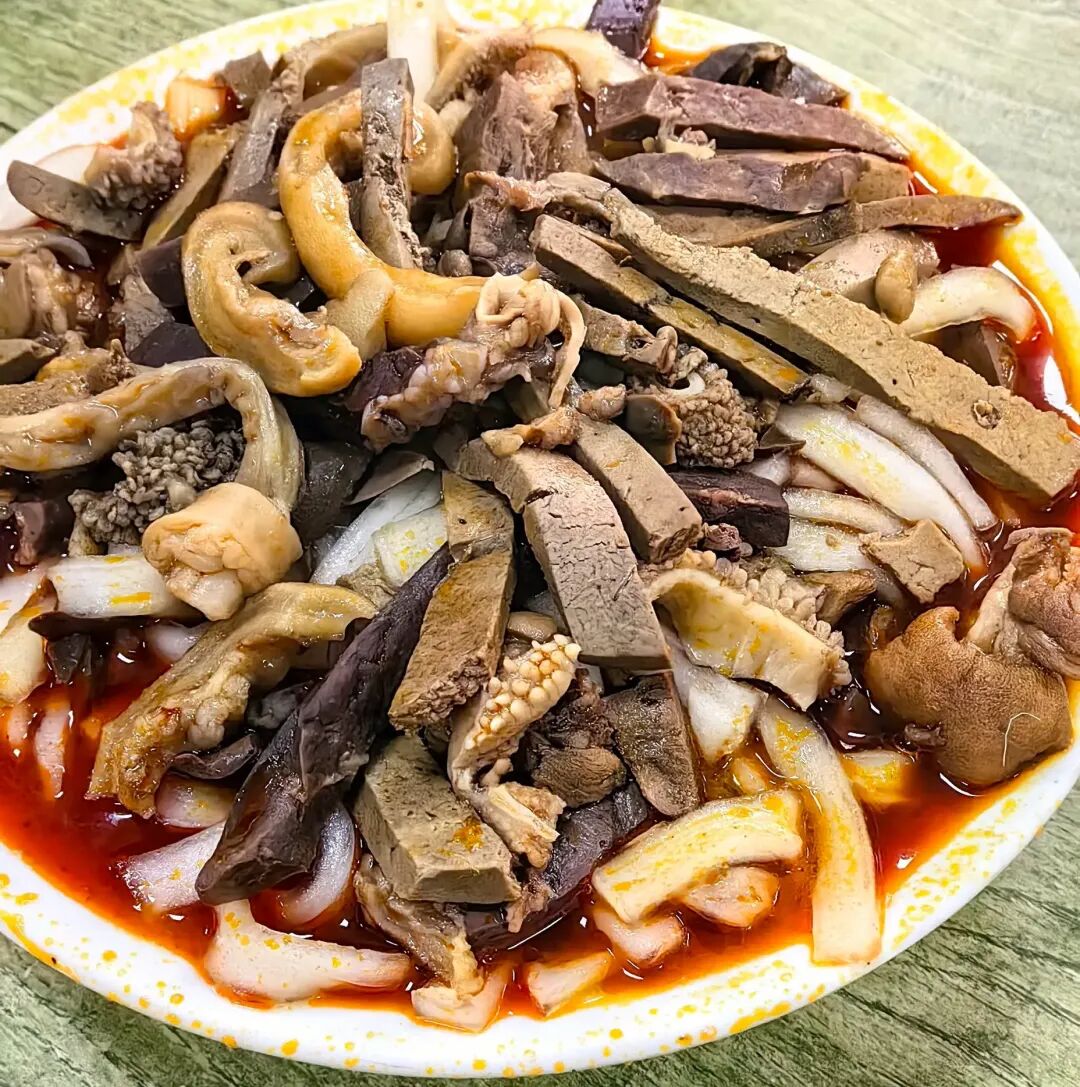 东关巷弄里的老摊子,守了三十年。羊尾油加五香料爆香,煮入洗净的羊杂、猪血和本地土豆粉。红白相间的一碗,油亮诱人。关键是——不腥不膻,只有醇厚。