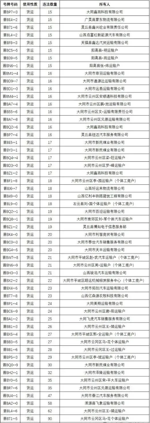 >大同:通报55辆突出违法车辆!
