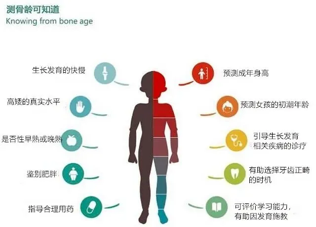 -及时发现潜在问题:部分内分泌疾病、遗传代谢性疾病等会通过骨龄异常表现出来,早检测早发现,就能早干预早治疗。