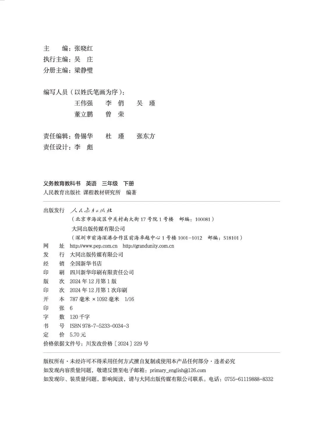 版本:人教大同版