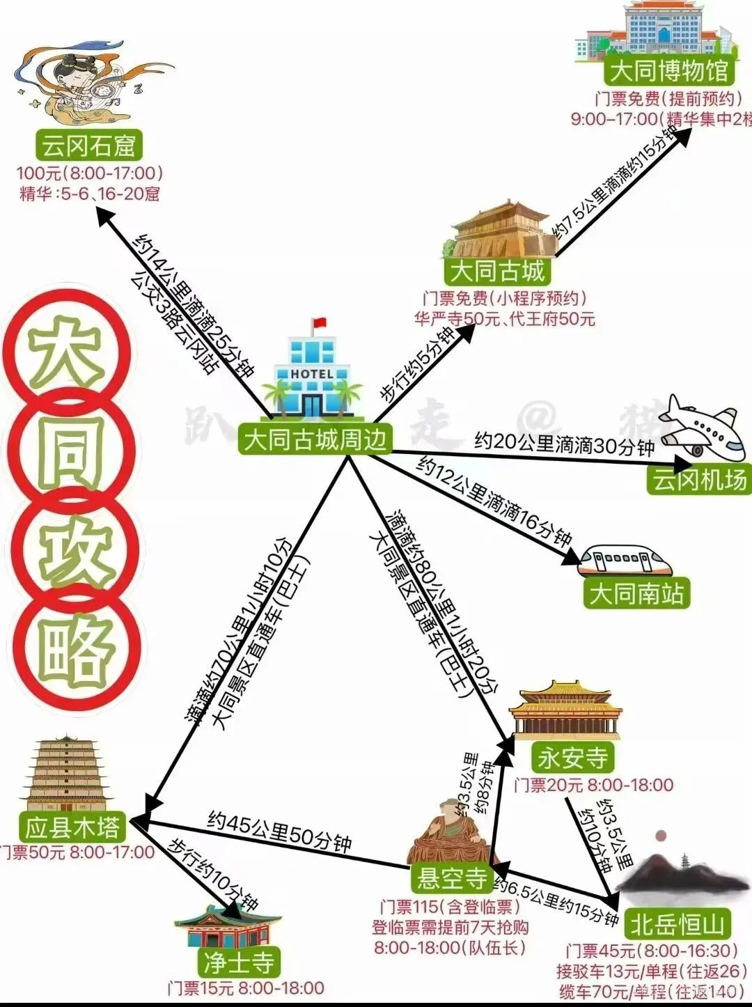 大同自由行攻略:2025年端午节,利用小长假5天时间,从西安出发,游玩了大同主要景点。大同各大景区设有直通车,非常方便,对于大多数人没必要报团,我们选择了自由行,时间更自由,安排更灵活。建议游玩时间3一5天。