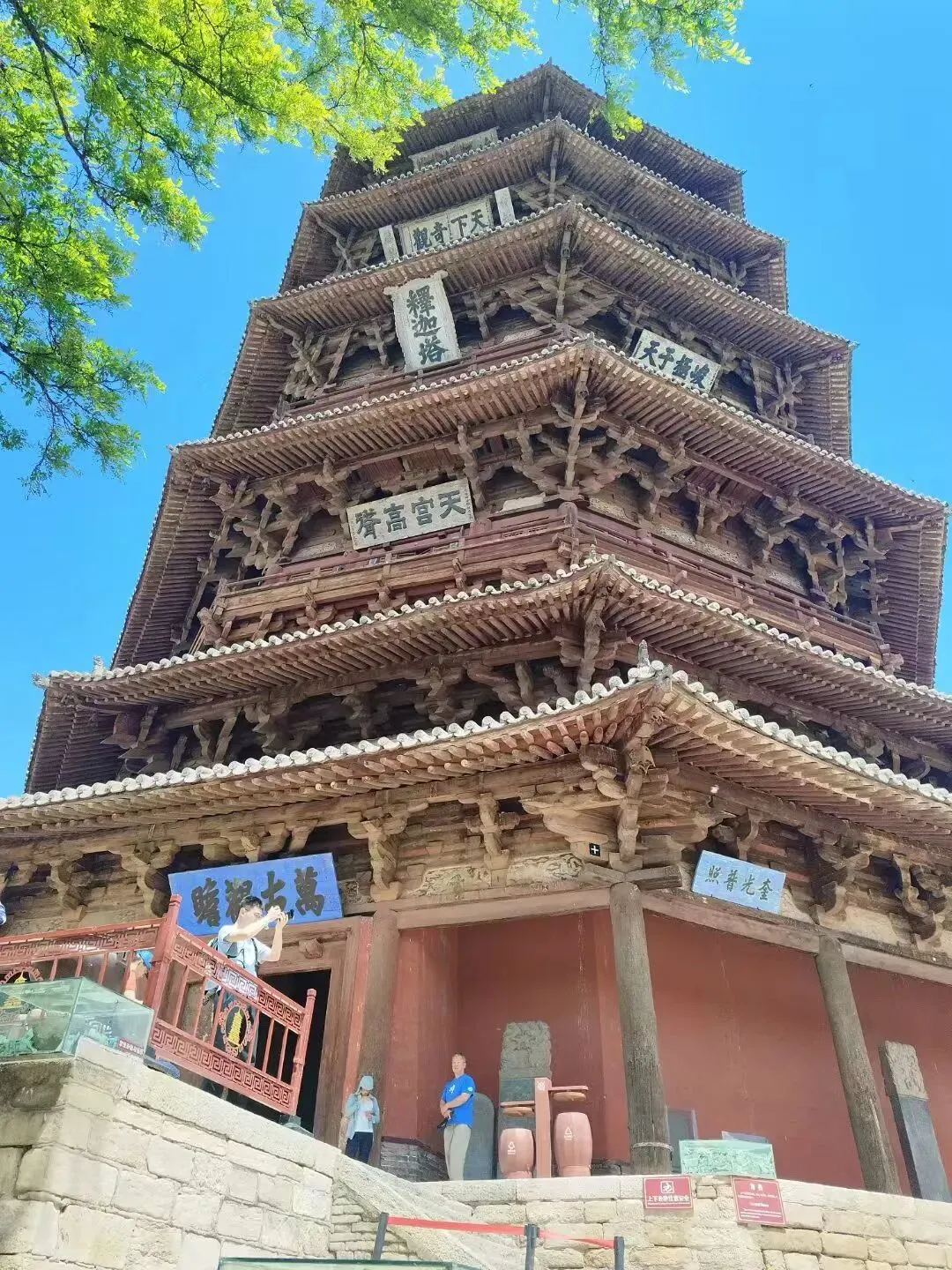 应县木塔是世界上现存最高大、最古老纯木结构楼阁式建筑,与意大利比萨斜塔、巴黎埃菲尔铁塔并称“世界三大奇塔”,应县木塔值得一游。三个途经可以到应县木塔,大同古城、云岗石窟和恒山游客中心均有到应县木塔直通车,可游完云岗石窟或恒山后直接去应县木塔。木塔旁有净土寺,值得一看。我们是最后一天从大同古城乘直通车到应县木塔,游玩后下午在应县高铁站乘高铁返回西安。