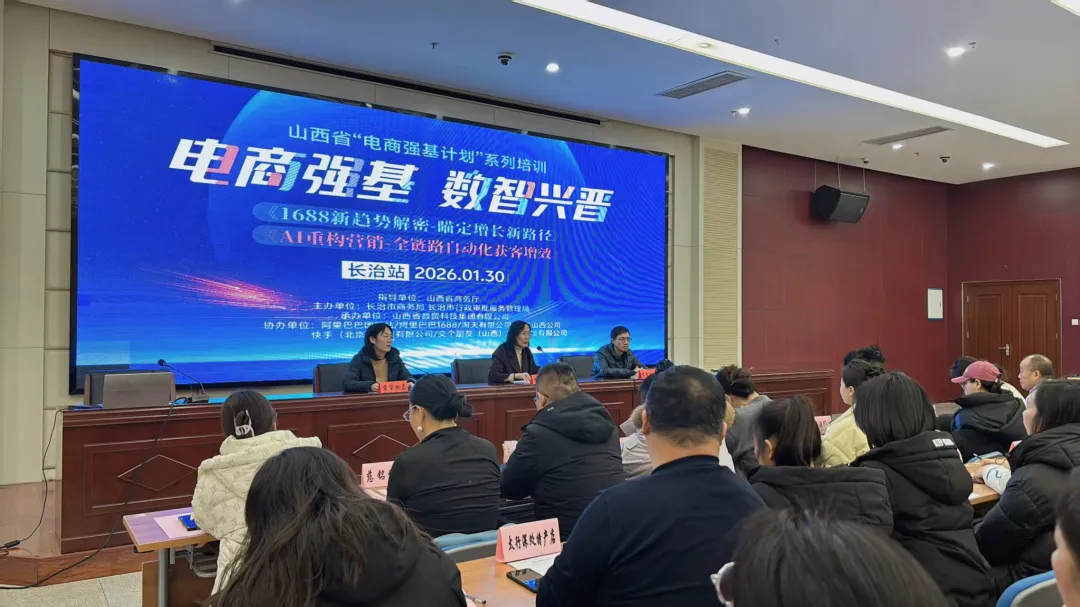 1月30日下午,由山西省商务厅指导,长治市精准服务经营主体领导小组、市商务局、市行政审批服务管理局联合主办,山西省数贸科技集团有限公司承办,阿里巴巴、京东、快手等多家平台协办的长治市“电商强基计划”系列培训(第一期),在市行政审批中心四层电子交易大厅顺利落幕。全市各县区百余户企业、个体工商户及创业个人齐聚一堂,共同参与本次电商赋能培训。