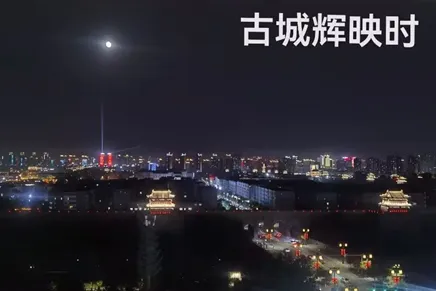 回到酒店,本是既意犹未尽又有些疲惫,可当我透过客房的落地窗,从高处、从整体上看到古城夜景时,我惊讶了,月光下,城宫煌煌,一片璀璨,这就是那座千年前傲然屹立塞上边关的不夜城啊!我立时倦意全消了。