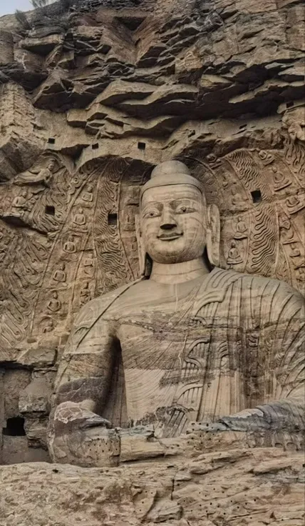 “凿石开山,因岩结构,真容巨壮,世法所稀。山堂水殿,烟寺相望,林渊锦镜,缀目所眺”北魏郦道元在《水经注》中所记录的云冈石窟,据说是關於雲岡石窟的首次文字記載。文中的雲岡、昔日的雲岡、我眼前所見的雲岡,哪一個更美呢?不知道,不知道啊!……但是,我知道,云岗这北朝杰作和南朝的四百八十寺、和那煙雨中的樓臺,正是那跨越千裏、南北遙對,共同撐起一段文明盛景的兩座巨峰呢!