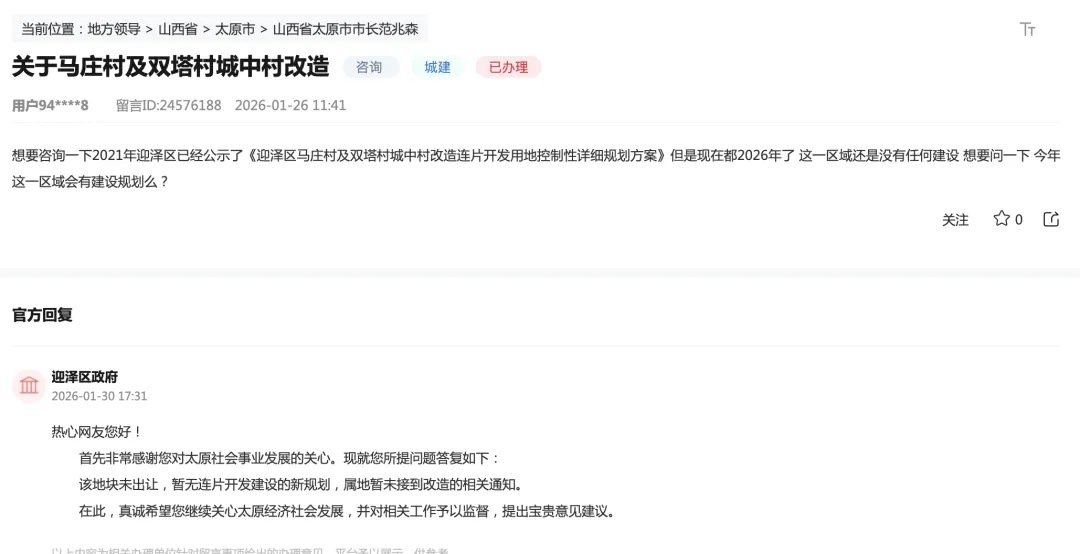 关于马庄村及双塔村城中村改造?