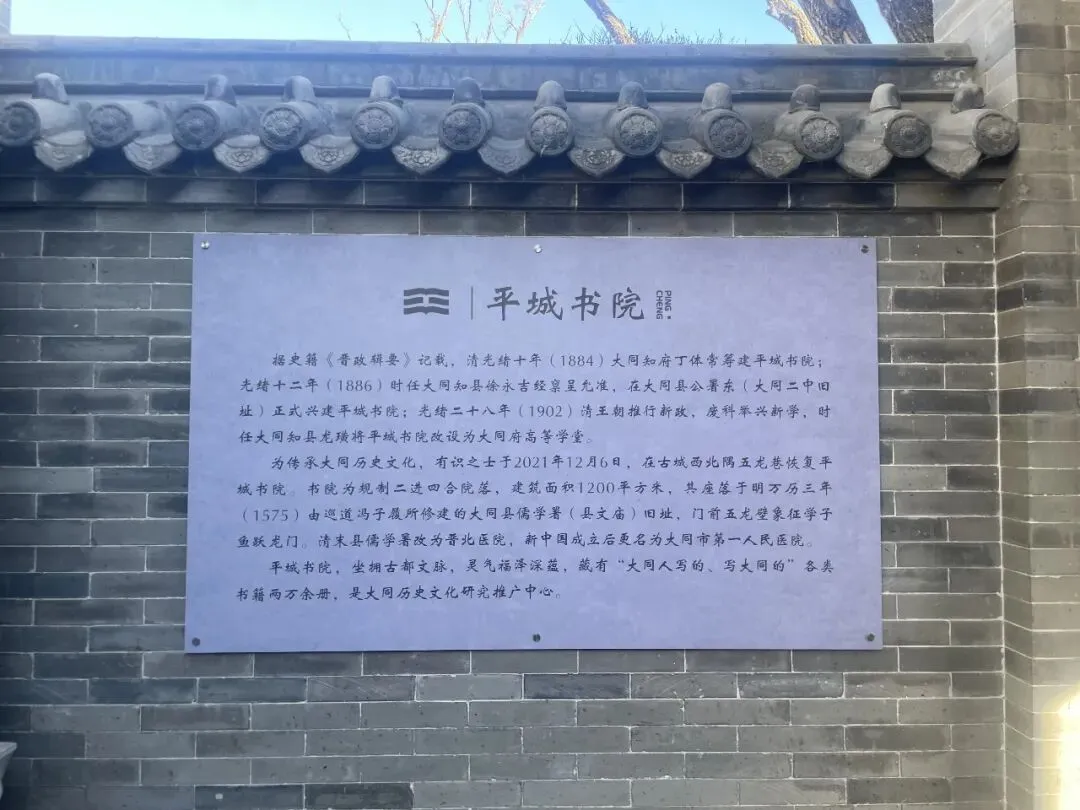 平城书院为县属书院,光绪年间筹建,后于县署东侧建成。据《山西书院》考证,其旧址即原大同市第二中学所在地。 值得注意的是,在地方历史记忆中,平城书院亦与古城内的五龙壁区域(原大同市第一医院旧址对面)有着密切关联,这或许反映了书院文化在近代城市变迁中的另一种印记。