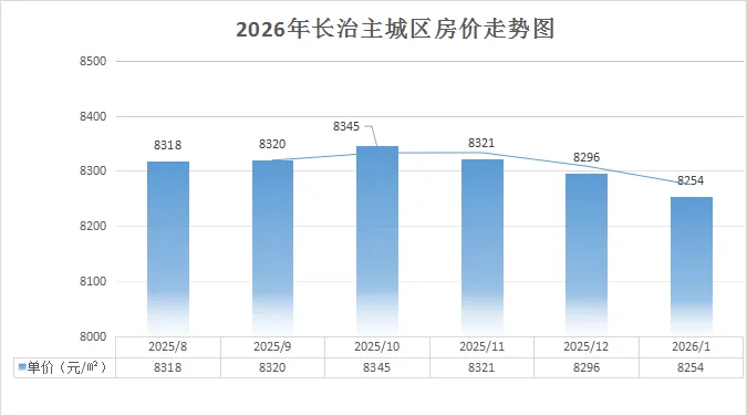 春节前1月份整体属于楼市淡季,市场多数楼盘销量低迷,但个别楼盘开盘热卖,整体房价稳中微降,根据房天下不完全统计长治主城区在售楼盘项目情况,2026年1月份整体销量在496套左右,销售面积在5.8万平米左右,销售金额约4.9亿元左右。