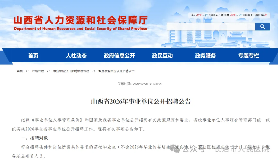 免责声明:本公众号刊登招聘信息,转载自网络,版权归原作者,如有侵权联系删除,其最终解释权归招聘单位。更多内容关注晋聘信息汇总(信号:jpxxhz888)免费获取。