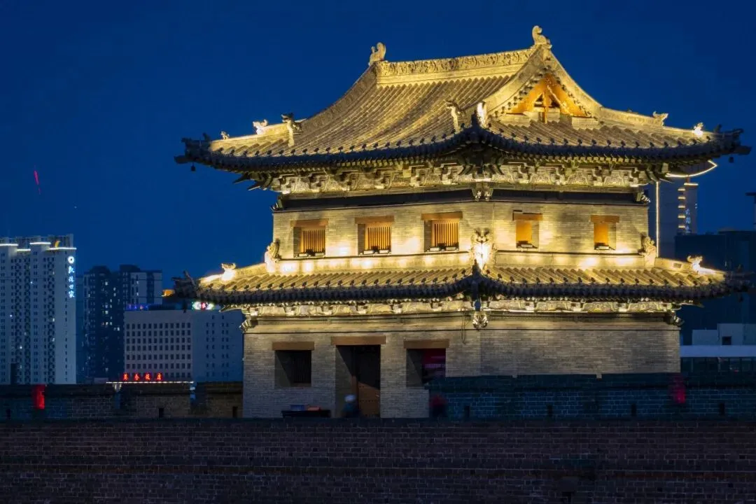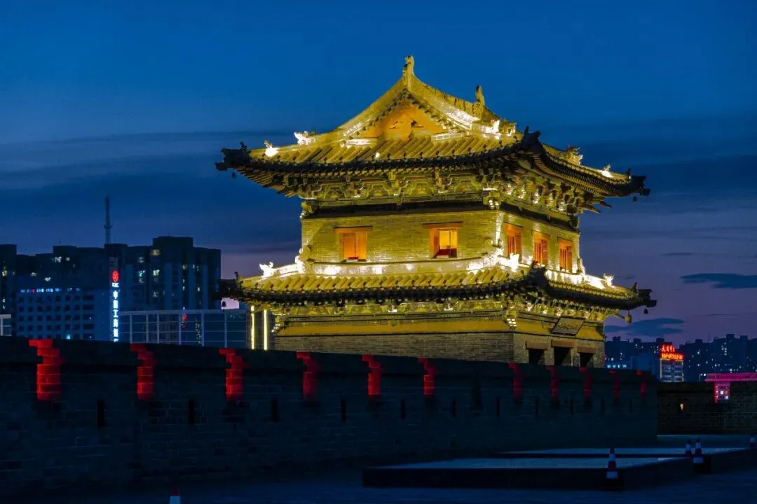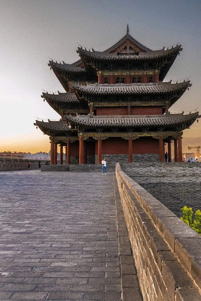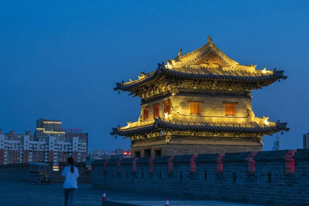 大同古城墙是中国现存较为完整、规模宏大的古代城防建筑,始建于明洪武五年(1372年),由大将军徐达在辽、金、元土城基础上增筑而成。墙体呈四大街、八小巷”的棋盘式布局,设有54座望楼、96座窝铺,外有护城河,形成严密的防御体系。古城设四门,东和阳、南永泰、西清远、北武定,每门各建城楼、箭楼、月楼三座,角楼四座,整体建筑雄伟壮观。现存的城墙为2008年后复建,全长约7.24公里。傍晚登城能欣赏落日余晖下的青砖灰瓦,又能体验华灯初上的繁华夜景。