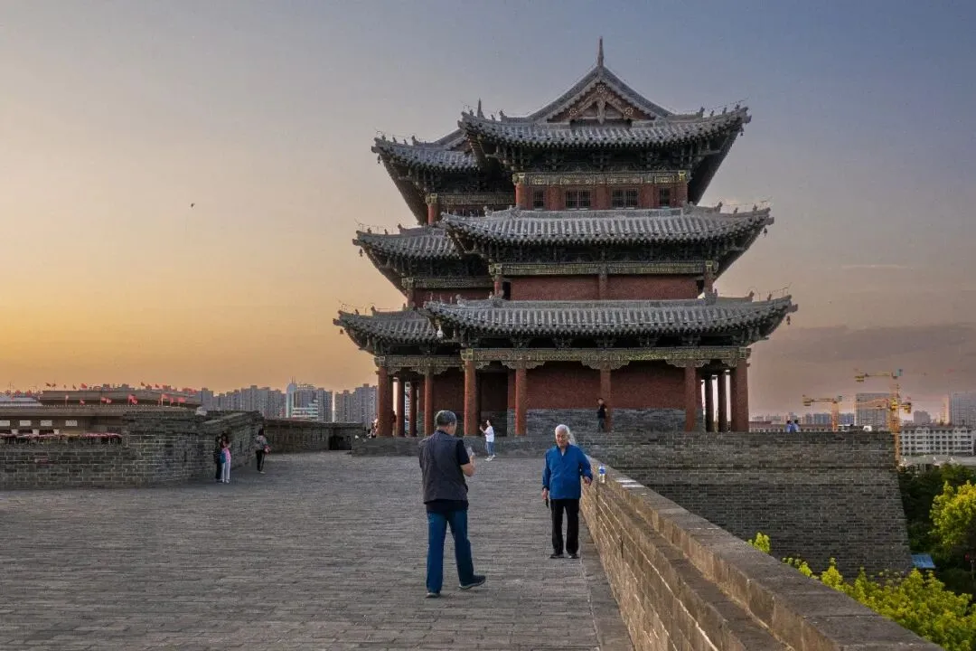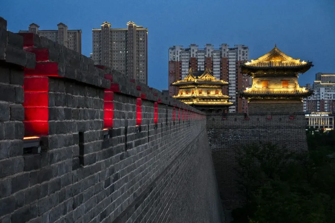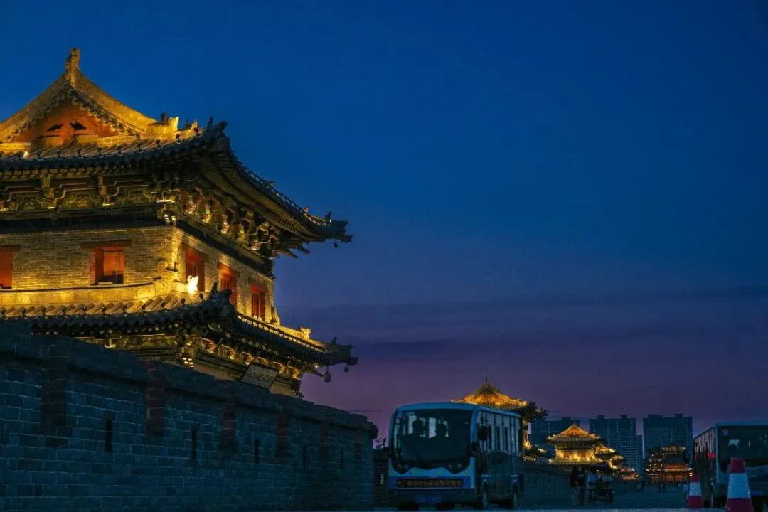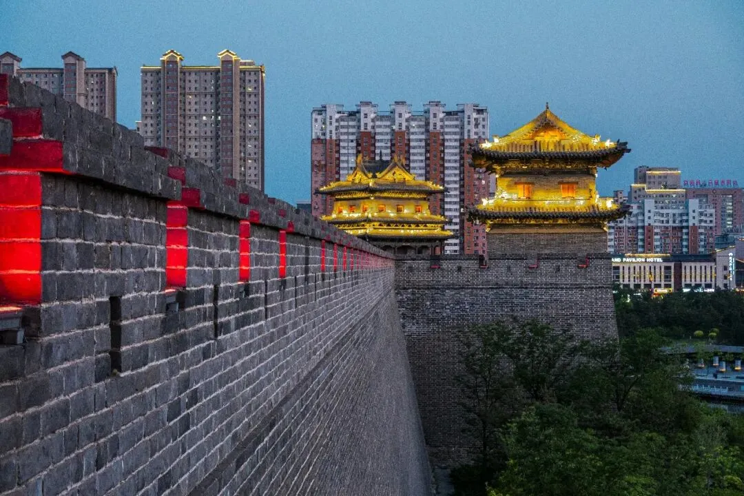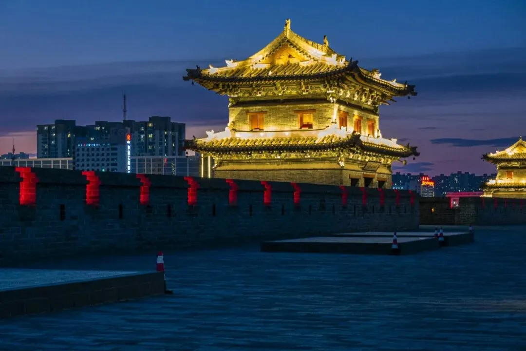 大同古城墙是中国现存较为完整、规模宏大的古代城防建筑,始建于明洪武五年(1372年),由大将军徐达在辽、金、元土城基础上增筑而成。墙体呈四大街、八小巷”的棋盘式布局,设有54座望楼、96座窝铺,外有护城河,形成严密的防御体系。古城设四门,东和阳、南永泰、西清远、北武定,每门各建城楼、箭楼、月楼三座,角楼四座,整体建筑雄伟壮观。现存的城墙为2008年后复建,全长约7.24公里。傍晚登城能欣赏落日余晖下的青砖灰瓦,又能体验华灯初上的繁华夜景。