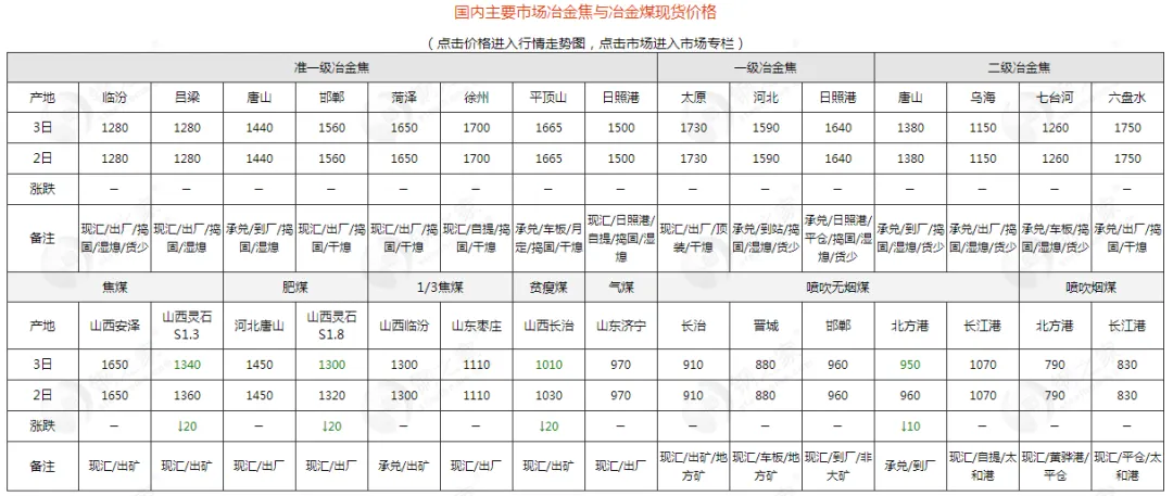 山东:今日价稳,地方矿肥煤执行1360-1380元/吨;气煤执行970元/吨,1/3焦煤执行1100-1130元/吨。少数地方矿产量减少,部分煤种资源紧张,下游采购积极性高,煤矿节前计划稳价出货。