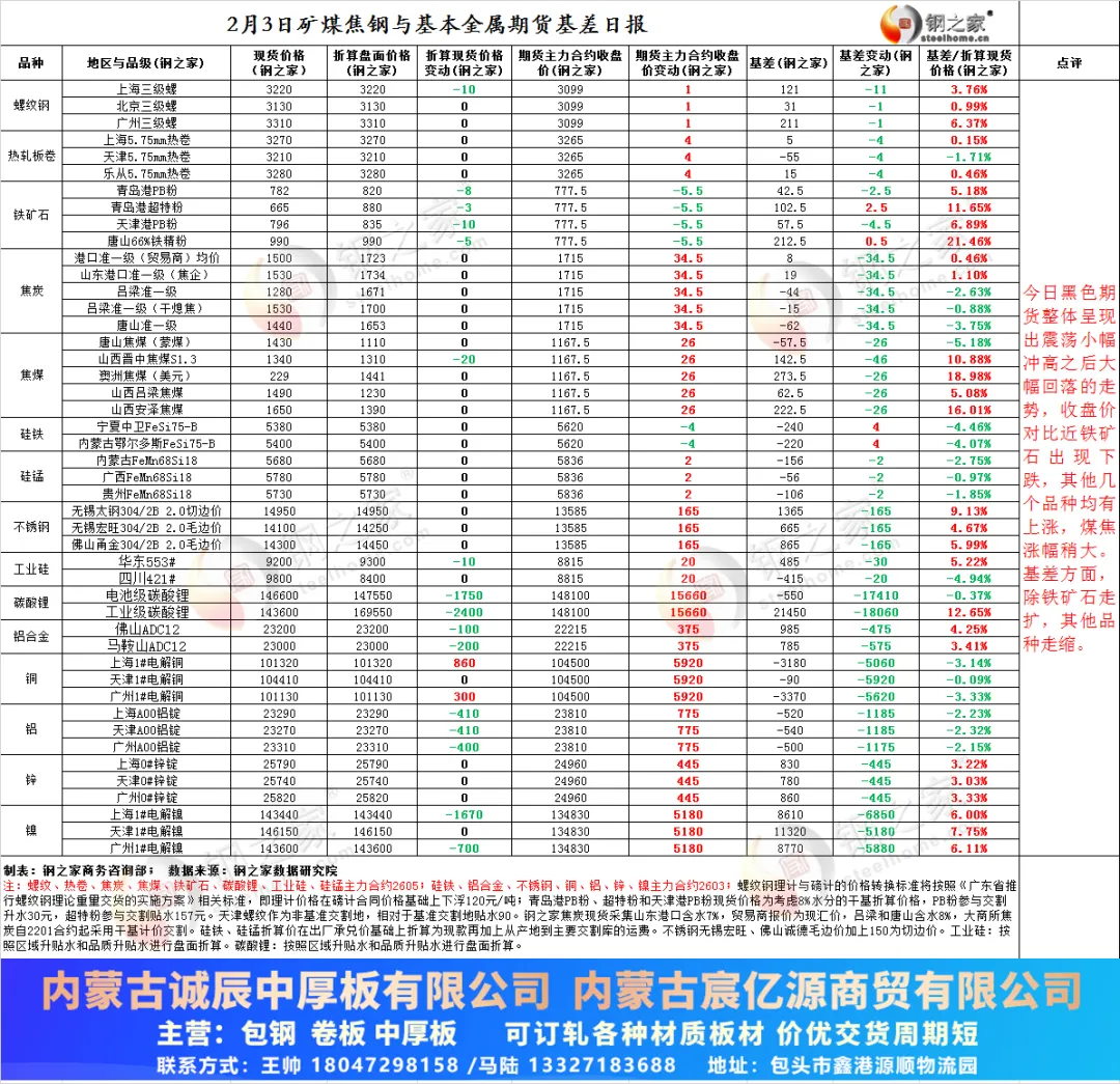 冶金焦市场:国内冶金焦市场主流稳定。需求端,节前下游高炉复产缓慢,对冶金焦需求难有明显提升。供应端,前期部分因环保限产的焦企陆续恢复正常生产,冶金焦供需基本平衡。现河北唐山准一级冶金焦价格1440元;山西吕梁准一级冶金焦价格1280元,均稳。港口方面,市场多观望,贸易商准一现汇自提报价至1500元/吨,一级至1600元/吨,均稳。现焦企承兑平仓准一基价1510-1530元/吨,一级CSR65基价1640元/吨,均稳。