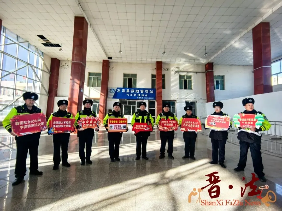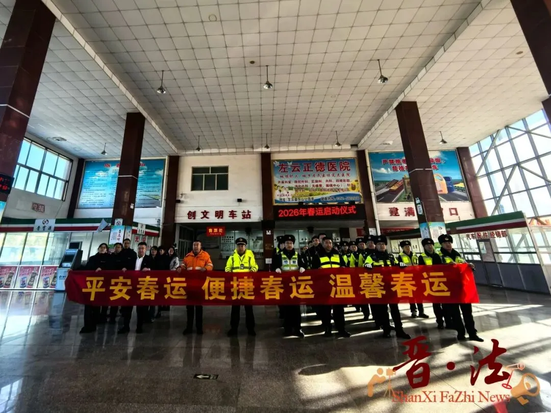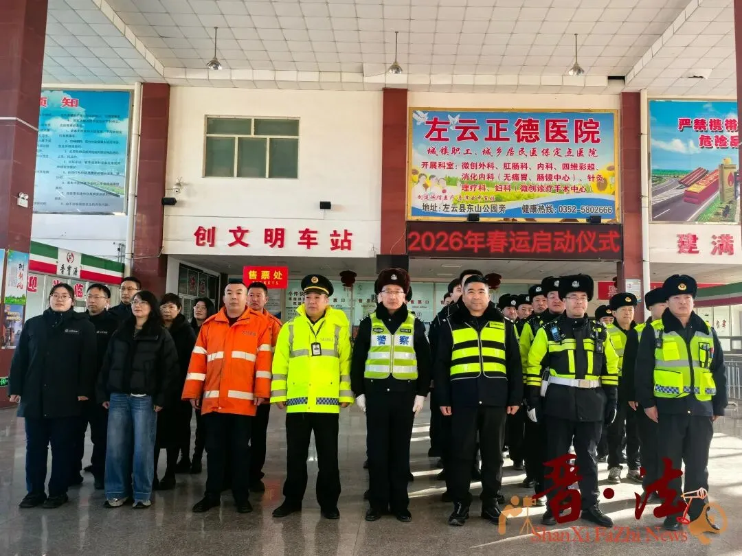 春潮涌动归乡路,警民同心护平安。2月2日,左云交管大队联合高速交警、县交通运输部门、客运站、公交公司等多家单位,在县汽车站隆重举行以“平安春运 交警同行”为主题的春运启动仪式。各联席单位相关负责人及工作人员共30余人齐聚现场,共同拉开左云县2026年春运交通安全保障工作的序幕。