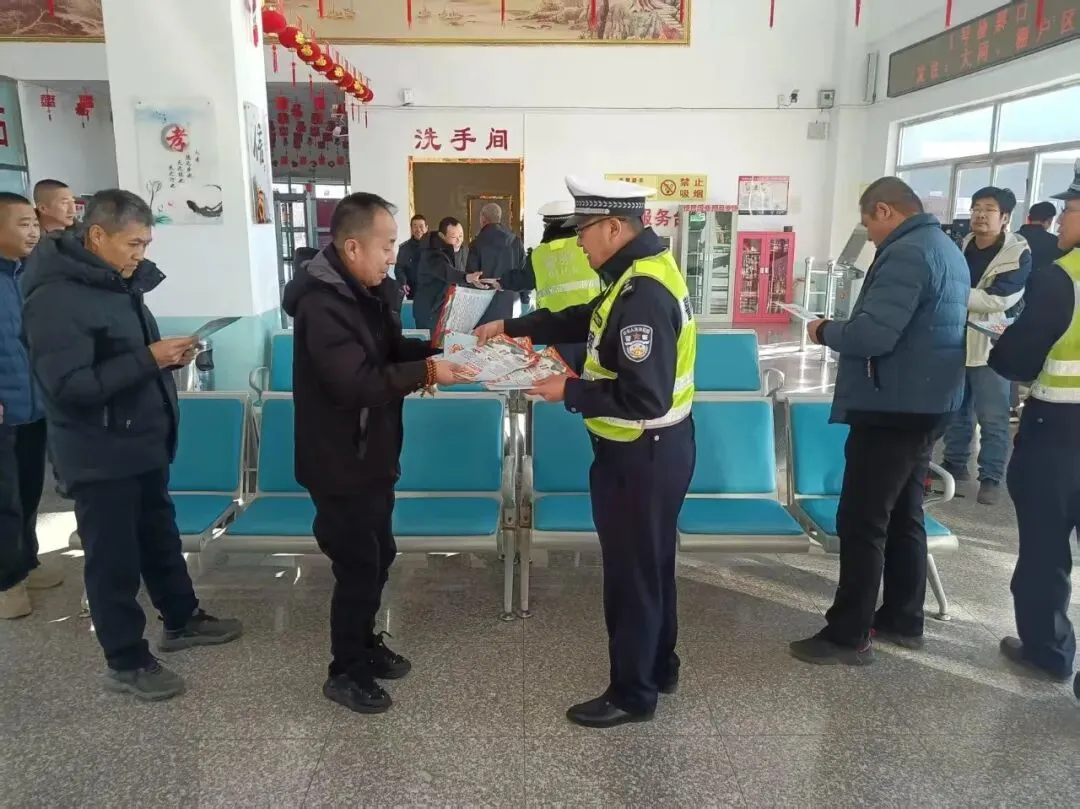 ▲天镇县:联合高速交警在县客运站启动春运工作,全警动员保障群众平安出行(春运周期:2月2日-3月13日)。重点开展“一盔一带”、酒醉驾危害等靶向宣传,通过发放资料、面对面讲解等方式,强化群众冬季出行安全意识,深化警企联动、警民共建机制,营造安全畅通交通环境。