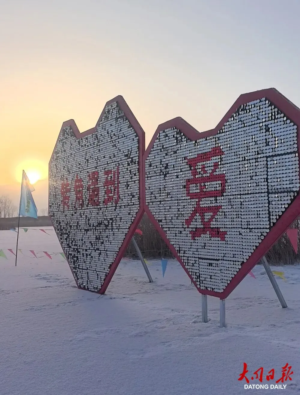 网红打卡点前人气高涨,心形玫瑰冰雕浪漫出片,巨型毛绒福马贴着“福气满满”趣味字样,游客争相打卡合影、沾福纳喜。