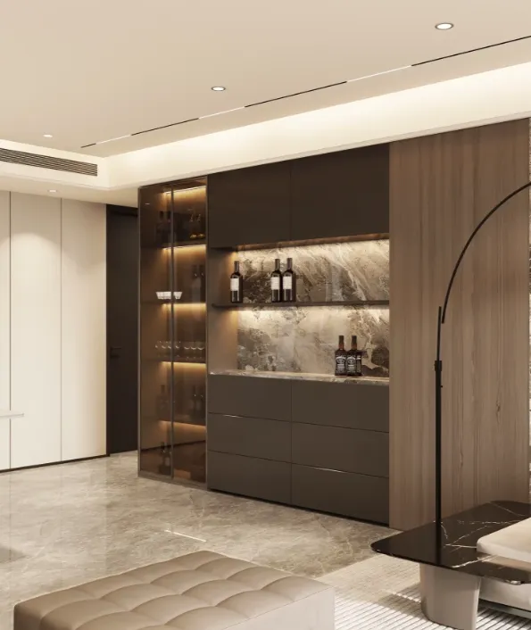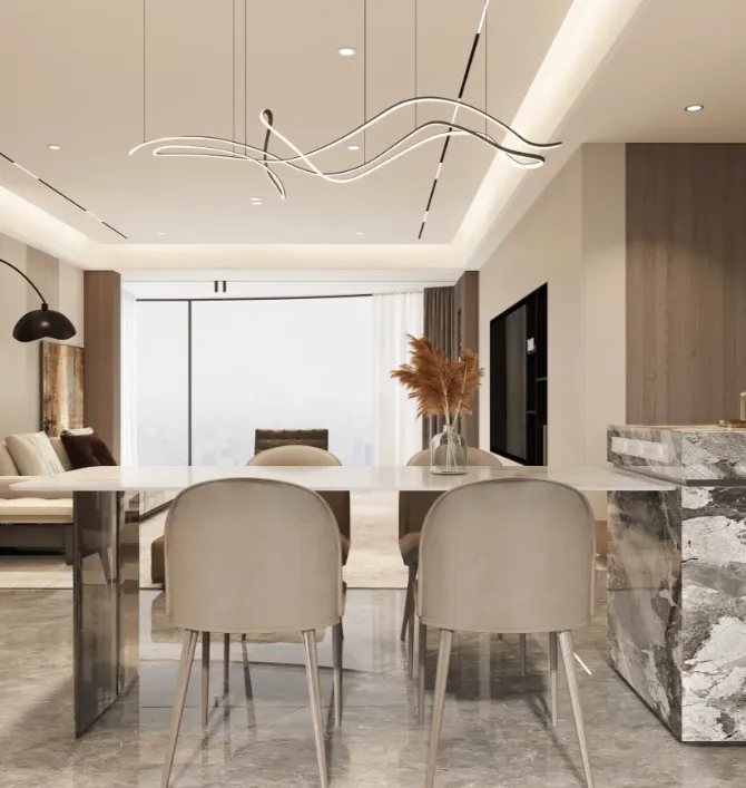 搭配Lutron或Savant智能调光系统,可通过手机APP或语音控制灯光的亮度与色温,实现会客、观影、休憩等场景的光影切换,既提升便捷度,又能根据心境调整空间氛围,让光影成为空间品味的延伸。
