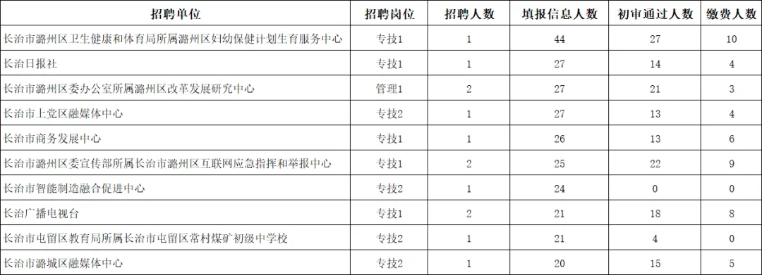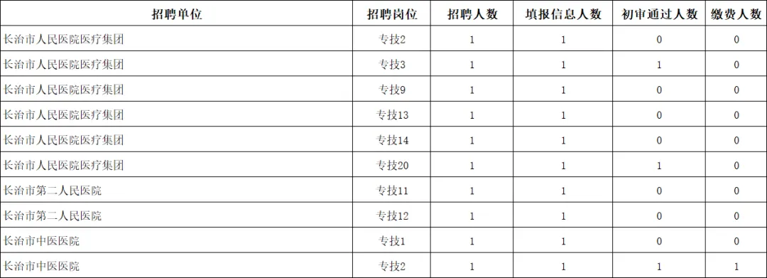 其中长治地区招录人数为1101人,招录岗位826个