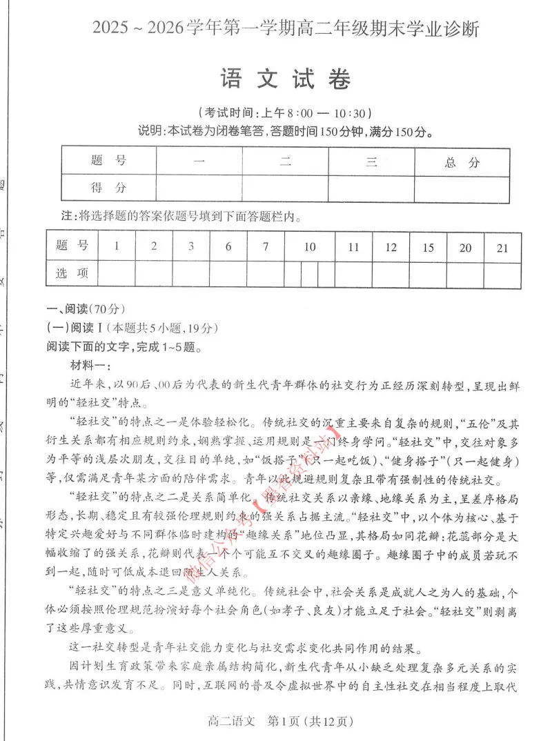 3.(3分)A(A项,根据材料一,“娴熟掌握、运用规则是一门终身学问","传统社会中,社会关系是成就人之为人的基础,个体必须按照伦理规范扮演好每个社会角色(如孝子、良友)才能立足于社会",由此可见学习并遵守伦理规则是个人立足社会的必要条件,该项符合文意。B项,"始终是最稳定可靠的社会支持网络与文意不符。C项,”礼’的首要功能是压抑个人的情感与欲望”与文意不符.D项,”给子爱’和'接受爱可以分开培养”与文意不符)