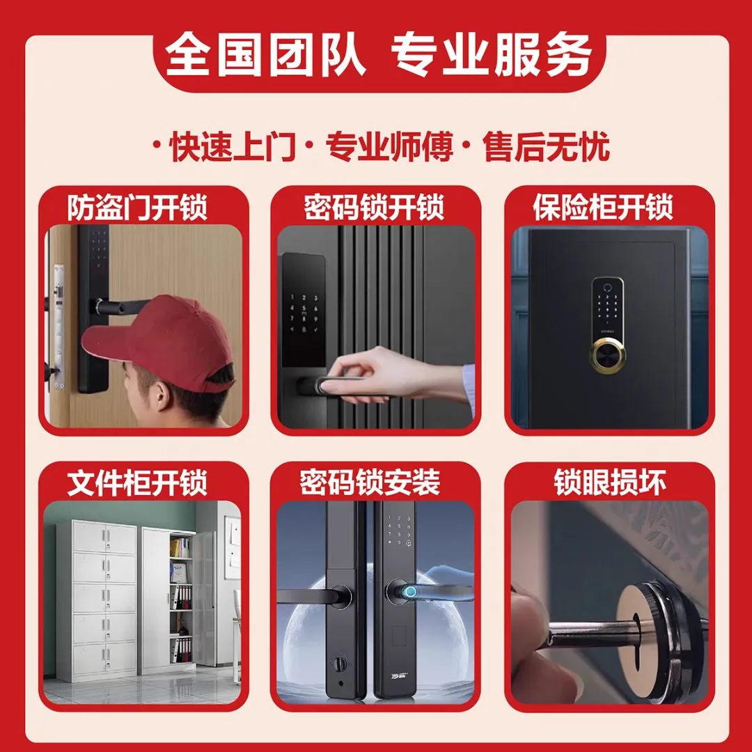 各类门锁、车锁、保险柜锁、指纹锁、密码锁、卷帘门锁无损技术开启,专业工具操作,保护锁具结构完好,24小时应急响应。