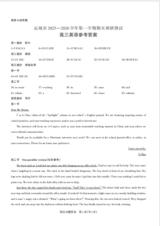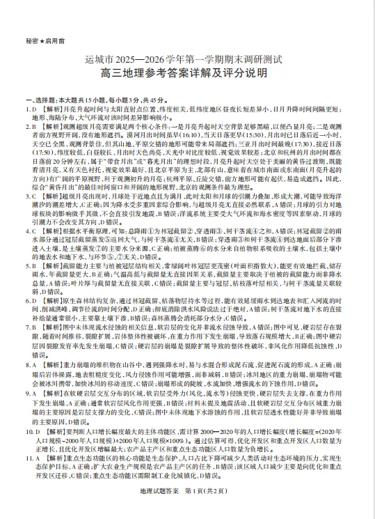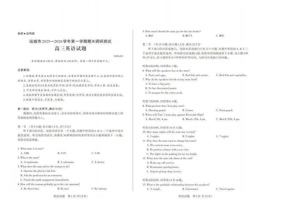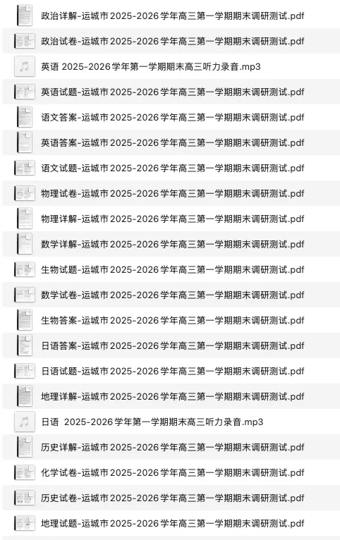 今天与大家分享的是一份「2026山西省山西思而行2026届第一学期高三期末学情监测(运城、大同、阳泉期末)」试卷。