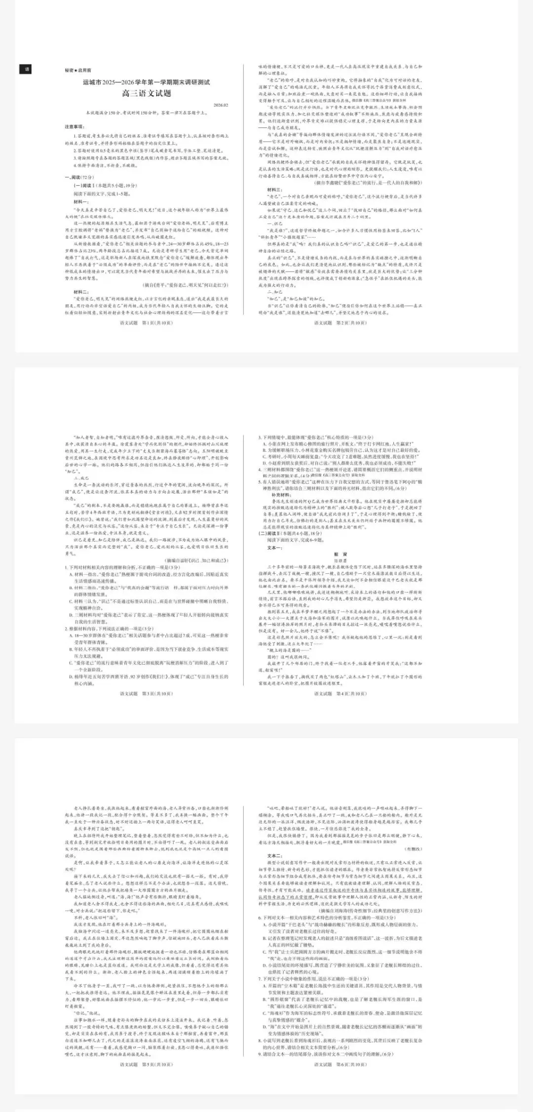 >大同市2025-2026学年高三2月第一学期期末调研测试及官方答案