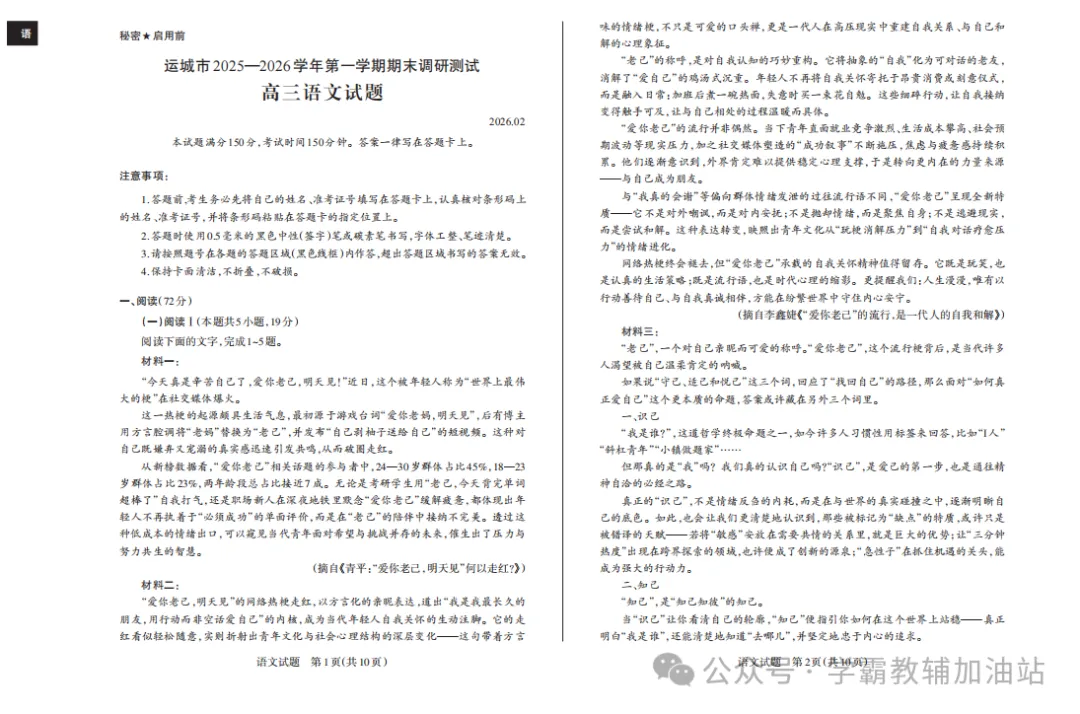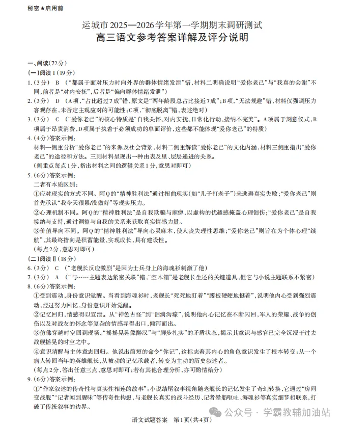 山西思而行·运城、大同、阳泉2025-2026学年高三第一学期期末调研测试【语文数学英语物理化学地理政治生物历史完整版答案pdf电子版】