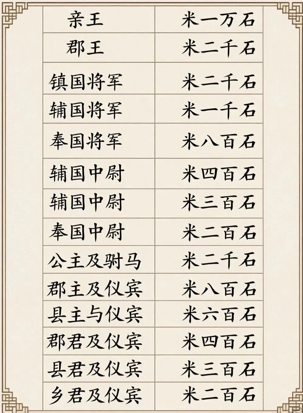 《大明会典》规定的宗室禄米数量,代王因地处贫困的大同,洪武时期禄米500石,到嘉靖四十四年长到6000石,其中一半用不值钱的大明宝钞代替。