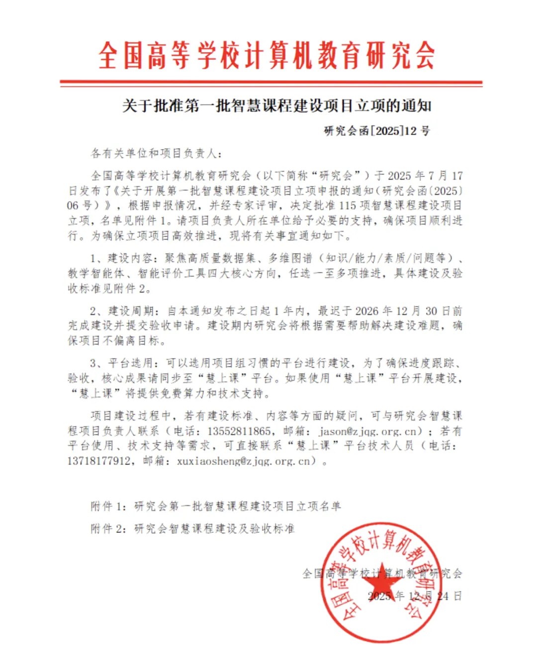 近日,全国高等学校计算机教育研究会发布了《关于批准第一批智慧课程建设项目立项的通知》(研究会函〔2025〕12号),太原师范学院计算机科学与技术学院亓慧教授带领的《现代教育技术》课程团队成功入选,成为全国首批115项智慧课程建设项目之一。