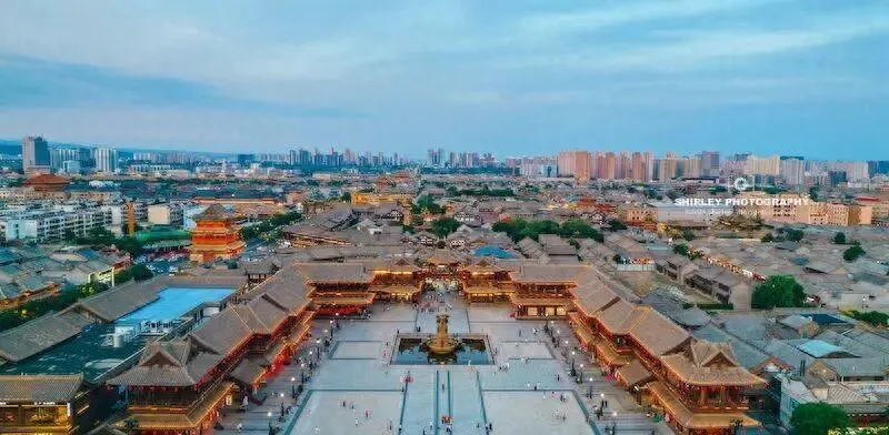 有个细节很少有人知道,薄伽教藏殿内有一圈精美天宫楼阁壁藏,是存放经书木柜,梁思成先生曾赞叹其为海内孤品,可惜位于后壁游客难见真容,但有心人会发现在华严寺广场上,矗立着一座放大复制的天宫楼阁,这或许是一种补偿,将隐藏瑰宝以新方式展现给世人,也暗合城市重现与新生主题。