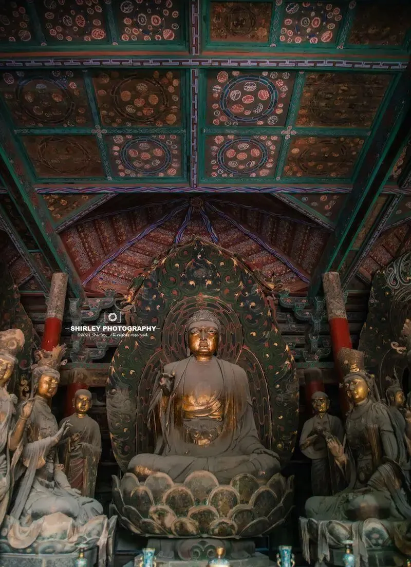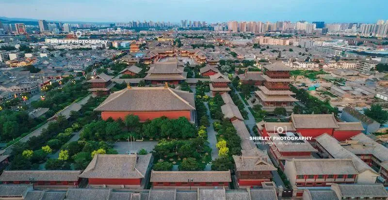 华严寺位于大同古城内,占地六万六千平方米,它始建于辽代公元一零三八年,距今已有近千年历史,作为辽代皇家寺院,它从诞生之初就注定不凡,契丹族崇拜太阳,所以整座寺庙一反汉地传统,所有殿门一律朝东而开,清晨第一缕阳光就能照亮佛堂,这是信仰融入建筑的生动体现。