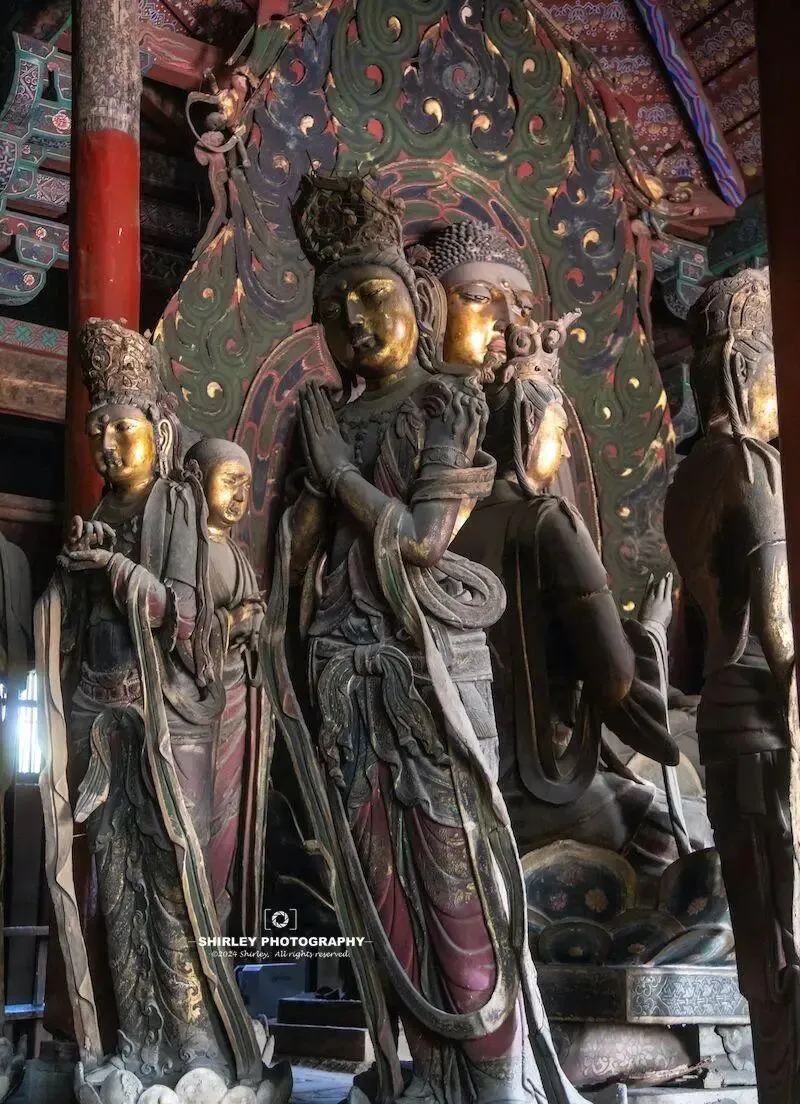 辽代灭亡后华严寺历经金代重修,明代增补,清代彩绘,它像一部立体编年史,层层叠压不同朝代印记,最核心瑰宝是下华严寺薄伽教藏殿,那是国内仅存八座辽代木构之一,踏入殿内幽暗光线中,二十九尊辽代彩塑静立千年,其中那尊合掌露齿菩萨最为动人,她体态轻盈唇角微扬,被誉为东方维纳斯,那种超越时代的审美自信,至今仍能直击人心。