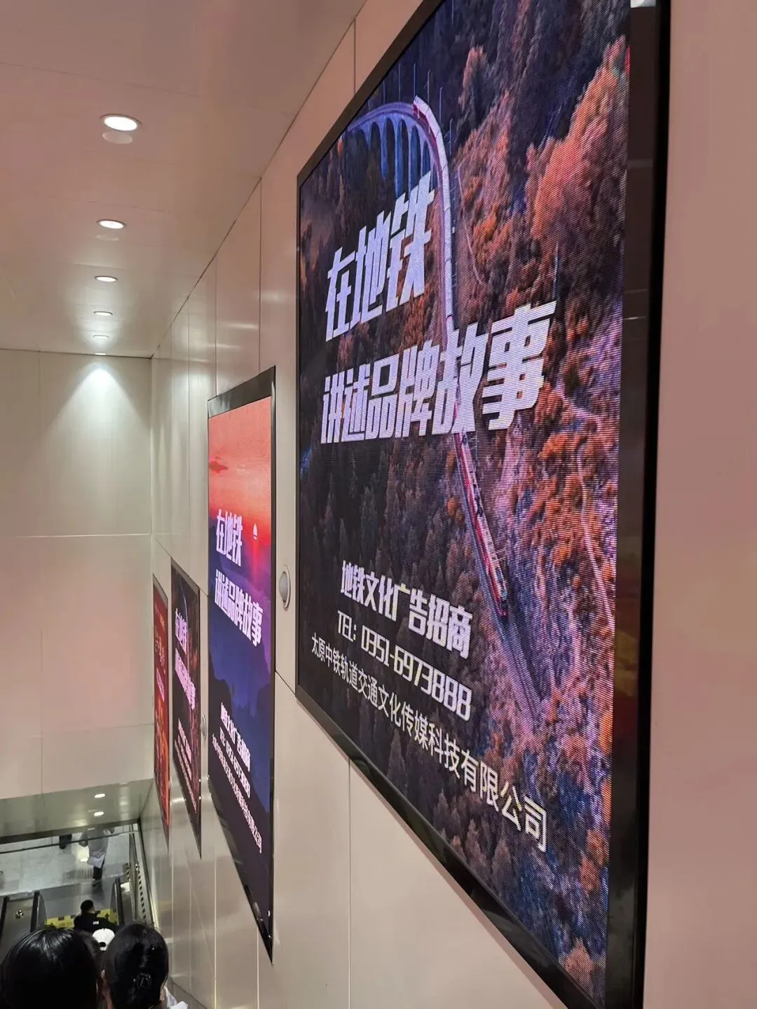 另外,在太原地铁大南门站,负一到负三站内最长的电梯两侧的广告位,有了新变化。