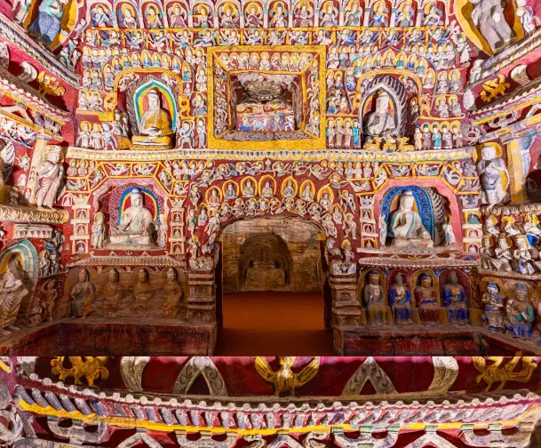 窟内雕刻着47种乐器,伎乐天手持箜篌、琵琶,姿态优美,仿佛能听见穿越千年的丝竹之声。