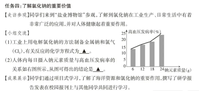 第二空:每日摄入钠元素越多,高血压发病率越高/摄入钠元素越多,高血压发病率越高