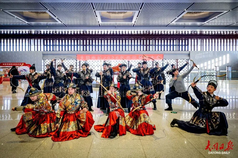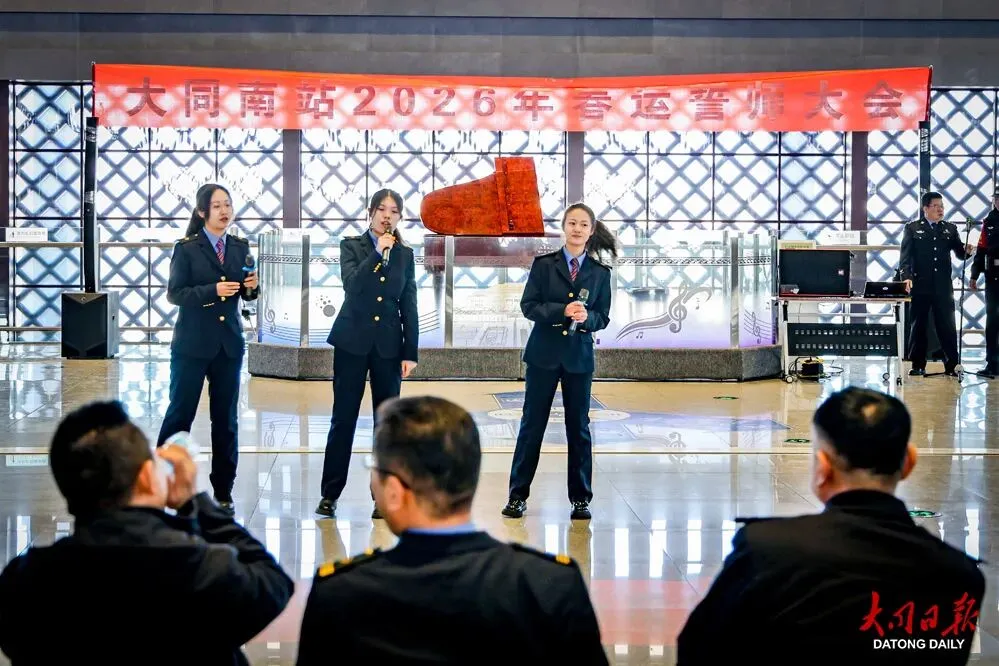 为全面保障春运期间铁路运输安全有序,大同南站于当日上午在候车大厅举行了2026年春运誓师大会,随后现场还进行了春运启动汇报表演,为春运各项工作顺利开展鼓劲动员。
