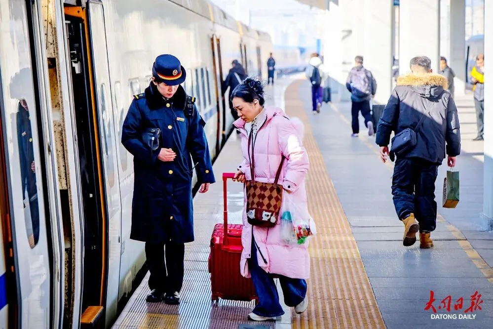 另一侧,杨先生与妻子拎着打包好的大同特产,正在核对车票信息。常年在大同务工的他恰逢春运首日放假,便第一时间带着妻子踏上返回重庆的旅程。“一年没回家了,就想早点回去和家人团聚。”杨先生说,车站的服务越来越周到,处处都能感受到温暖,让漫长的归途少了奔波疲惫,多了安心惬意。